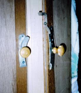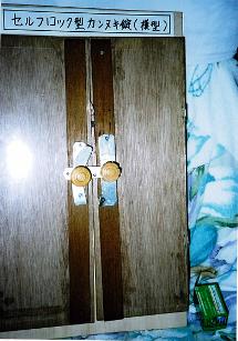 | 1.出品者 | 布施木 禎子 | 食器収納用戸棚などの扉が地震のショックで開くのを防止するため装着するセルフロックカンヌキ錠を改良し、新たにレバー作動抑止金具片を付加したものである。これにより通常の家事において使用中の扉は、カンヌキの施錠を防止するとともに、一方、扉を閉める際には抑止金具片が作動するため扉のいずれかを押すのみで簡単かつ確実に施錠されるようにしたものである。 |