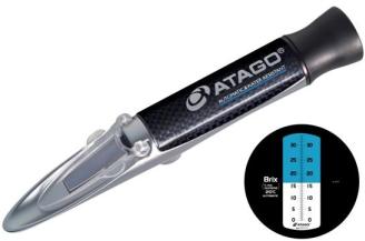 屈折計は、糖度計、濃度計ともいわれ、果物の甘さや調味料の濃度を測る測定器です。測定方法は簡単!サンプル液を載せて目盛りを読み取るだけです。 果物の収穫時期チェック、飲料や調味料の濃度管理に活用できる他、切削油の濃度管理、漬物・干物の塩分測定等幅広く活用できます。手持屈折計世界初の防水性や温度補正の新機能を備え、使いやすさにこだわった屈折計です。 |