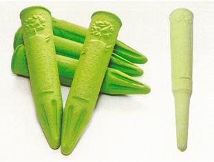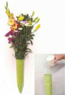 本考案は古紙100%使用した墓地用花立て器である。 従来のビニール、陶器、竹筒等は再利用処分が困難で焼却時に有害物質発生の恐れがある。本発明は、モウルド製法を利用し古紙をバキューム吸着圧縮乾燥、形成し防水加工する為、長期間保水が可能。紙である為、焼却処分でき地中に埋めて生分解する。また、紙密度が薄い為、通気性が良く水が揮発し対流する為、花が長持ちする。 |