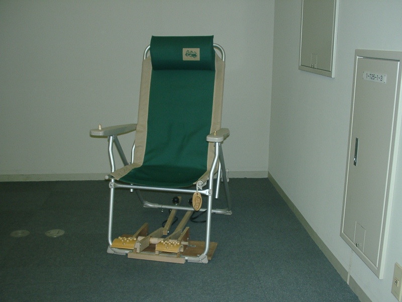 足の裏と背中と手を同時にマッサージする手動式マッサージチェアです。環境にやさしく、たためるので片付けるのが簡単です。それにペダル式なので運動にもなります。ペダルをこいで、背中の部分にあるローラーを動かします。また、つぼの書いてある板があるので、あんま棒に手を押し付けて、マッサージする時に使えます。