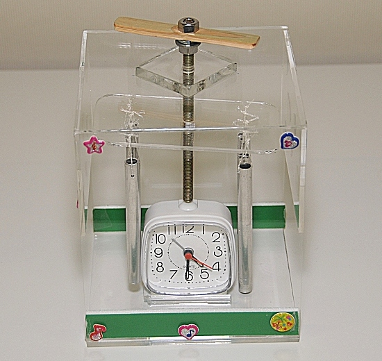 これは絶対に起きられる「おはようマシーン」です。ハンドルを何回も何回も回して、疲れながらアラームをとめます。